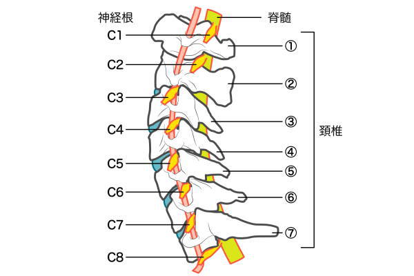 C5~C7に影響があったため、親指に痛みが発生していたと考察できる。実際に首回りの筋肉を緩めることで痛みが消失したことが確認できた。