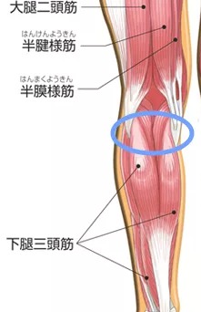 下腿三頭筋は、ふくらはぎの筋肉で、腓腹筋が内側と外側に2つあり、その下にヒラメ筋があります。 役割は足関節の「底屈」という足首を下に向ける運動や、立っている時座ってる時、階段の上り下りをする際など様々な動作の時に働くので、しゃがんだまま作業をしたり重たいものを持って歩いたりするときにも強いストレスがかかります。そして、下腿三頭筋が硬くなると膝上に痛みを生じる場合があります。