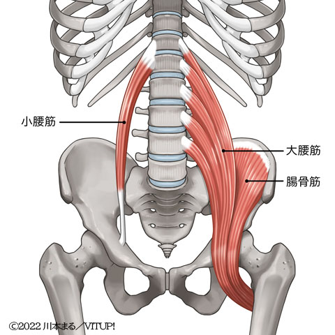 腸腰筋は腰から始まり、骨盤の前を通って大腿骨に付着している筋肉で、上半身と下半身をつなぐ大切な筋肉です。